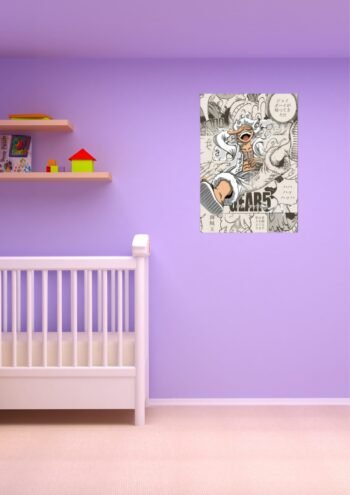 ₹200.00Original price was: ₹200.00.₹79.00Current price is: ₹79.00.A dynamic anime poster featuring Luffy’s Gear 5 transformation. It showcases his iconic “Sun God Nika” silhouette with white hair and clothes, set against a background of original manga panels and Japanese typography. The design radiates high energy, laughter, and the “drums of liberation.”