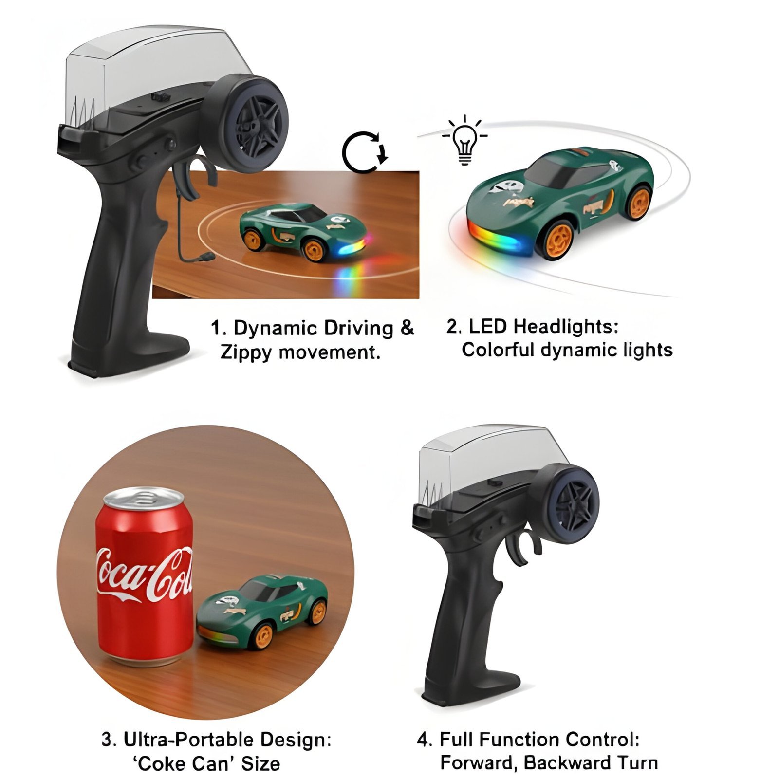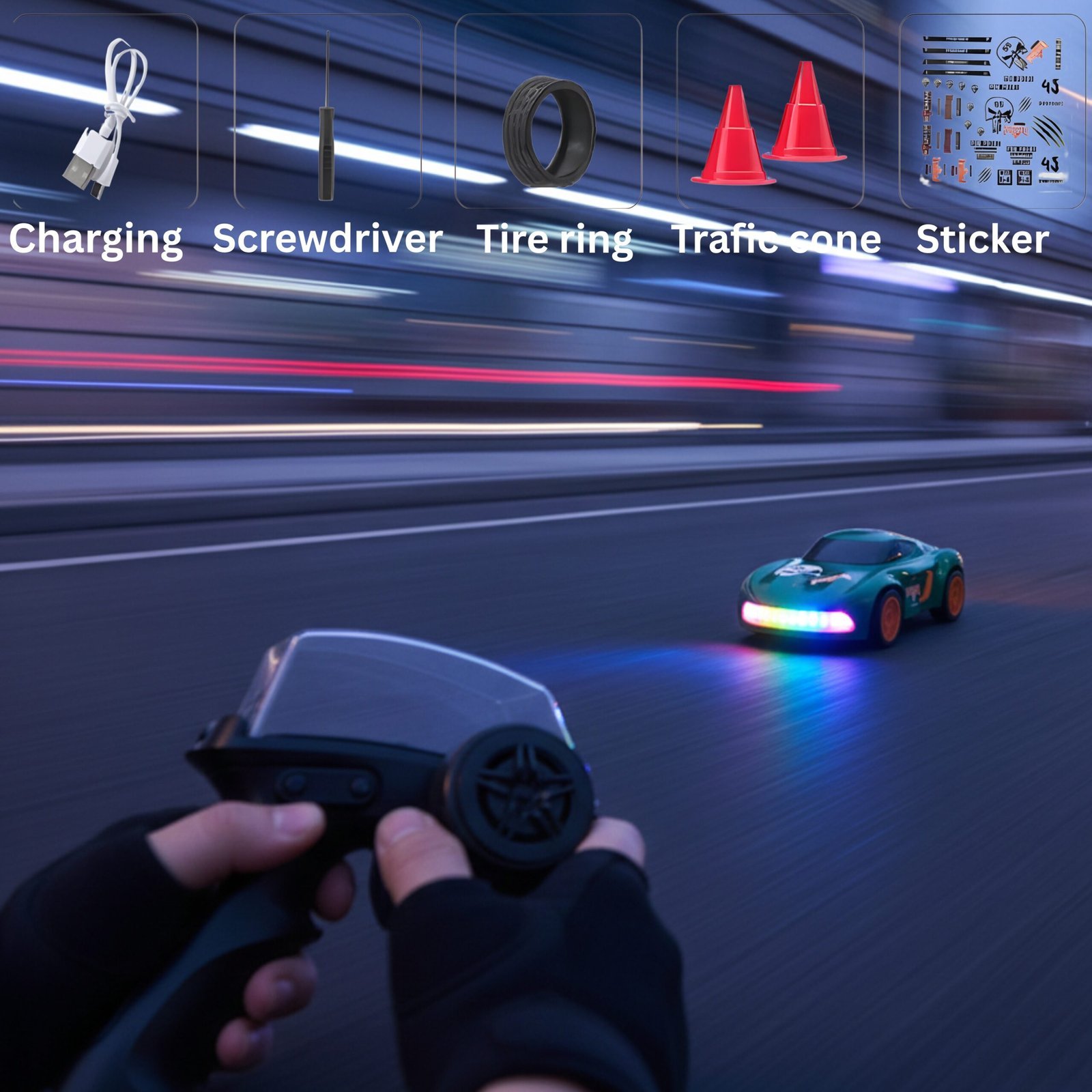 • Illuminated Racing: The car is equipped with powerful rainbow LED headlights and glowing chassis lights, making it ideal for low-light or nighttime racing.