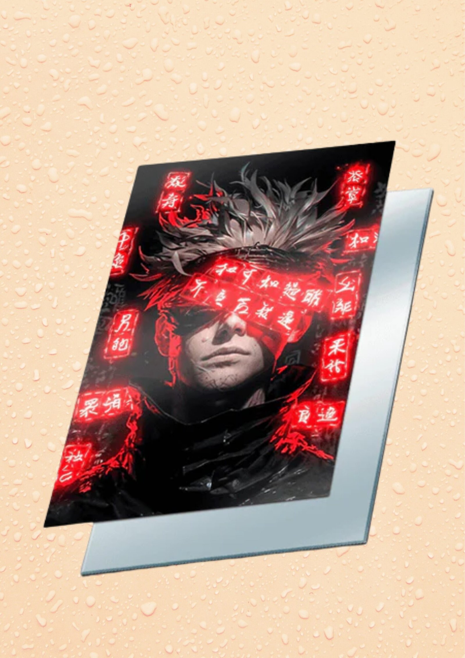 A premium Sukuna Anime Decorative Panel featuring a dynamic, high-intensity illustration. This collectible piece showcases the “King of Curses” in a dramatic battle-ready pose with a sleek, reflective finish, perfect for wall mounting or desk display.