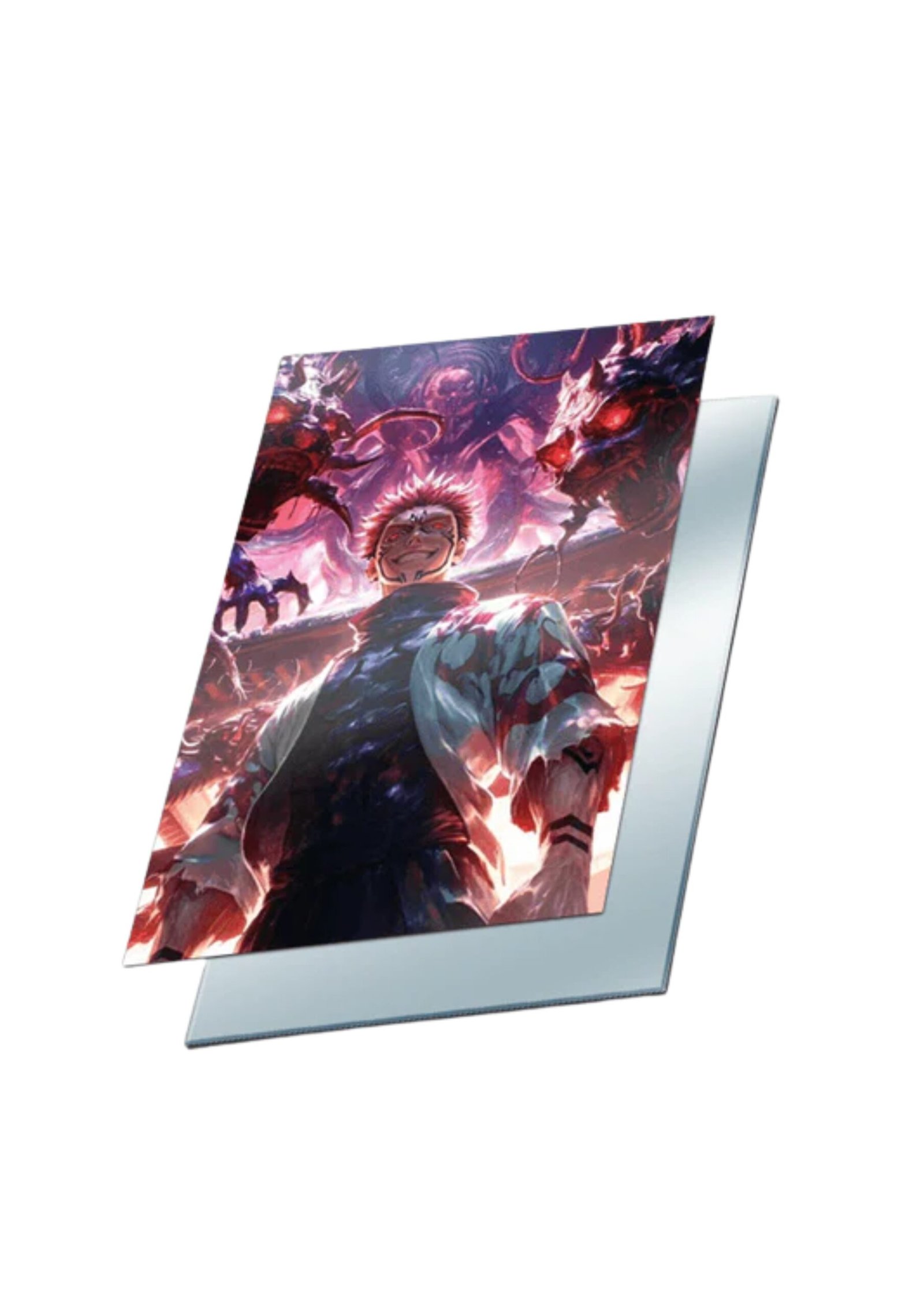 A premium Sukuna Anime Decorative Panel featuring a dynamic, high-intensity illustration. This collectible piece showcases the “King of Curses” in a dramatic battle-ready pose with a sleek, reflective finish, perfect for wall mounting or desk display.