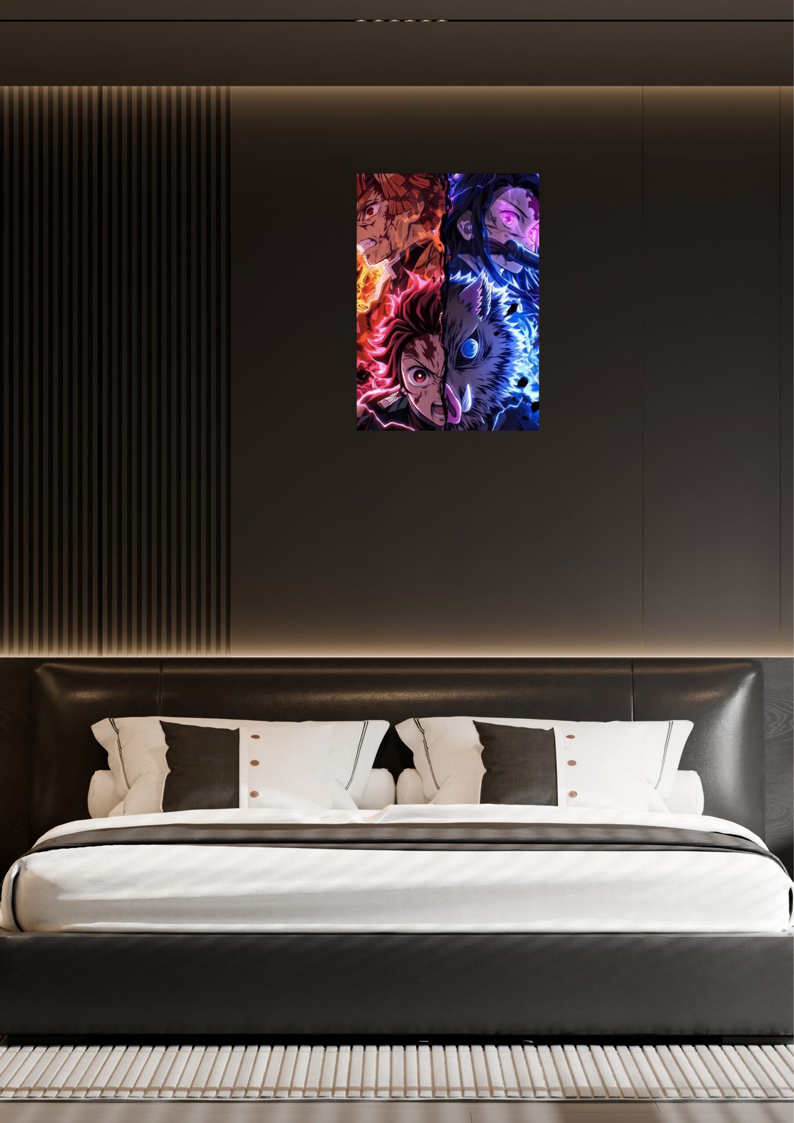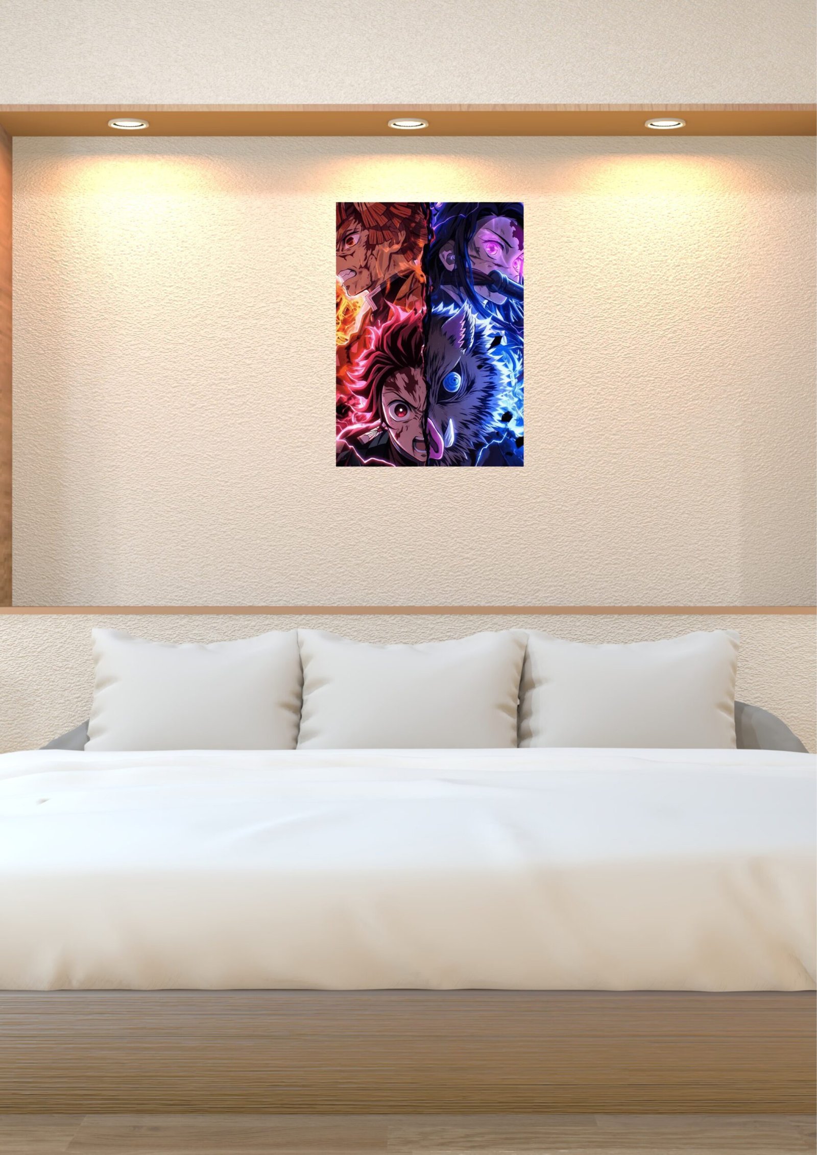 Contemporary Neutral (Light Room): In a brighter setting with cream or beige tones, the artwork adds a necessary splash of color and personality, making it ideal for a bedroom, gaming room, or dedicated anime den.